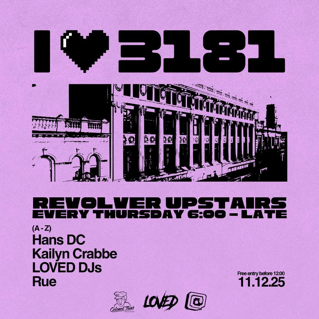 From dinner to disco, 3181 Thursdays keeps it laidback and local from 6pm with Colonel Tan’s dinner resident Hans DC, while the dance floor mischief you’d expect from the wee hours at Revolver is provided by LOVED.