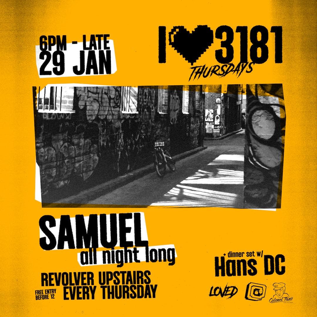 From dinner to disco, 3181 Thursdays keeps it laidback and local from 6pm with Colonel Tan’s dinner resident Hans DC, while the dance floor mischief you’d expect from the wee hours at Revolver is provided by LOVED.