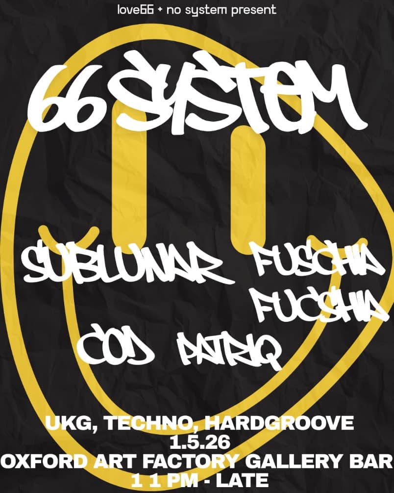 Sydney collectives love66 and No System are taking over the Oxford Art Factory Gallery Bar on the 1st of May for the first edition of 66 SYSTEM. No stranger to the Sydney scene, love66 returns from a successful run in Newcastle and Sydney with Club Miramar and No System are coming off the back of a sold-out debut event. With sets from Sydney City heavyweights Fuschia Fuschia, Sublunar, COD and Patriq, the carefully curated lineup will range across UK Garage, Techno and Hardgroove. From the first kick drum to the last fader cut, expect hard energy from start to finish. See you in the dance.
