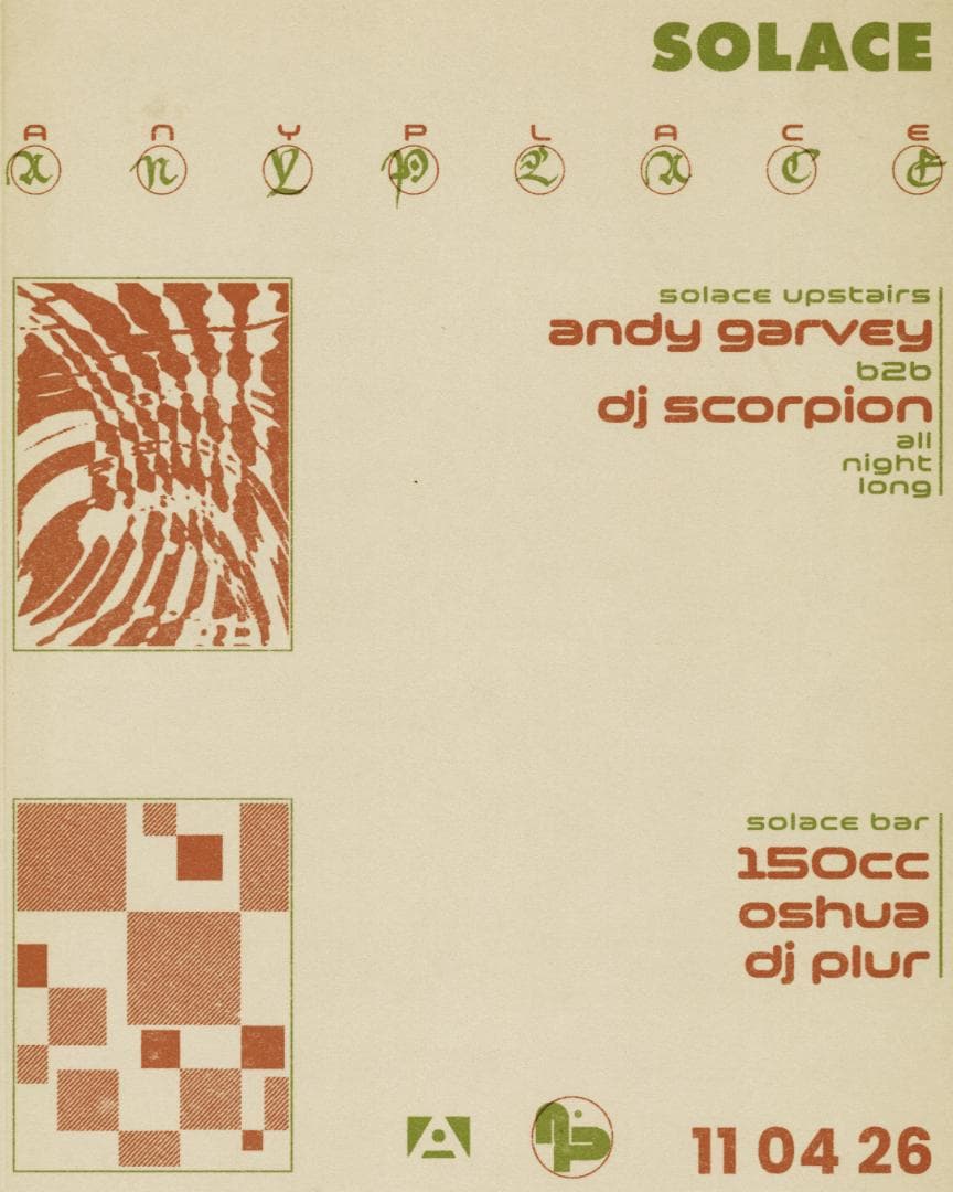 Fresh off a heaving Pitch 2026 set, Andy Garvey and DJ Scorpion land at Solace for a rare all night long B2B session this April.