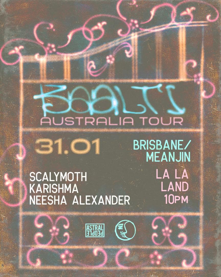 With Mela as the foundation, Baalti’s Australian debut invites audiences into a space where bass, rhythm and cultural memory move together.