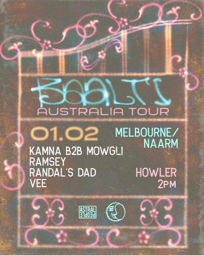 With Mela as the foundation, Baalti’s Australian debut invites audiences into a space where bass, rhythm and cultural memory move together.