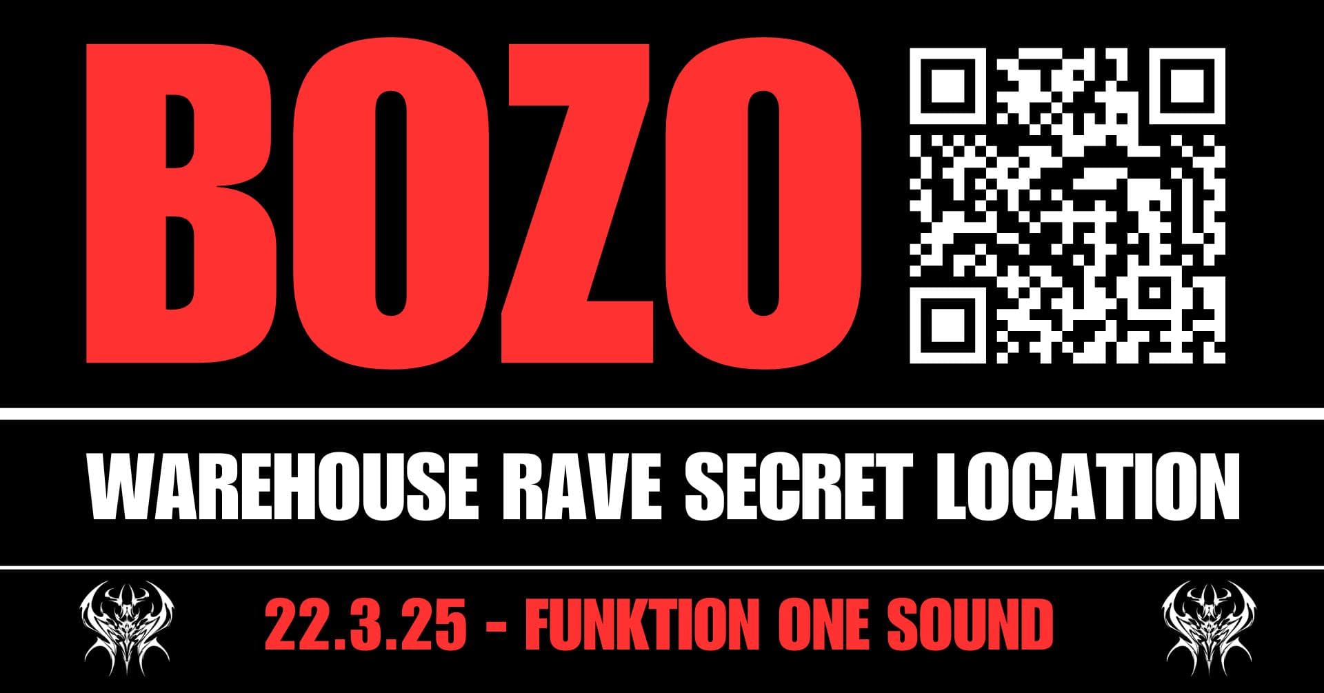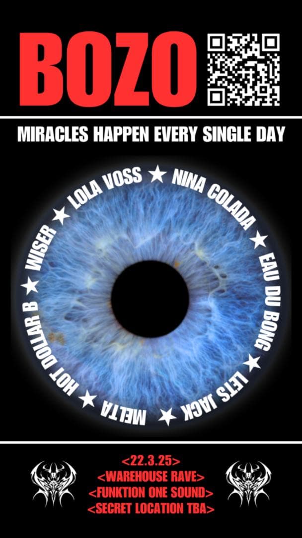 The Bozo 03 Rave will take place in an Abandoned Warehouse Space, within 8km of the CBD.