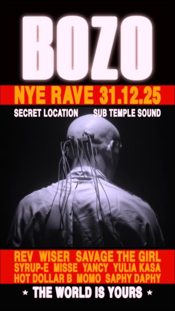 Bozo is committed to delivering high-quality production at every event. This rave will feature a festival-grade sound system (Sub Temple Sound), immersive lighting and visual effects, and a full team of security and dedicated door staff to ensure a smooth, safe experience for all attendees.