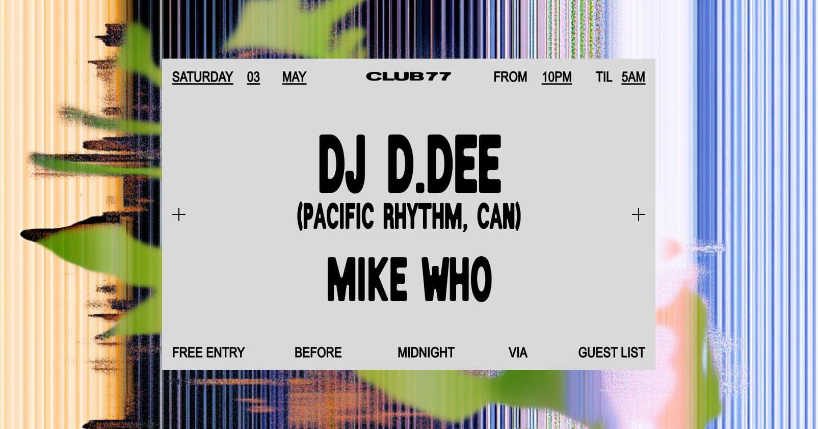 Club 77: DJ D.Dee (Pacific Rhythm, CAN), Mike Who