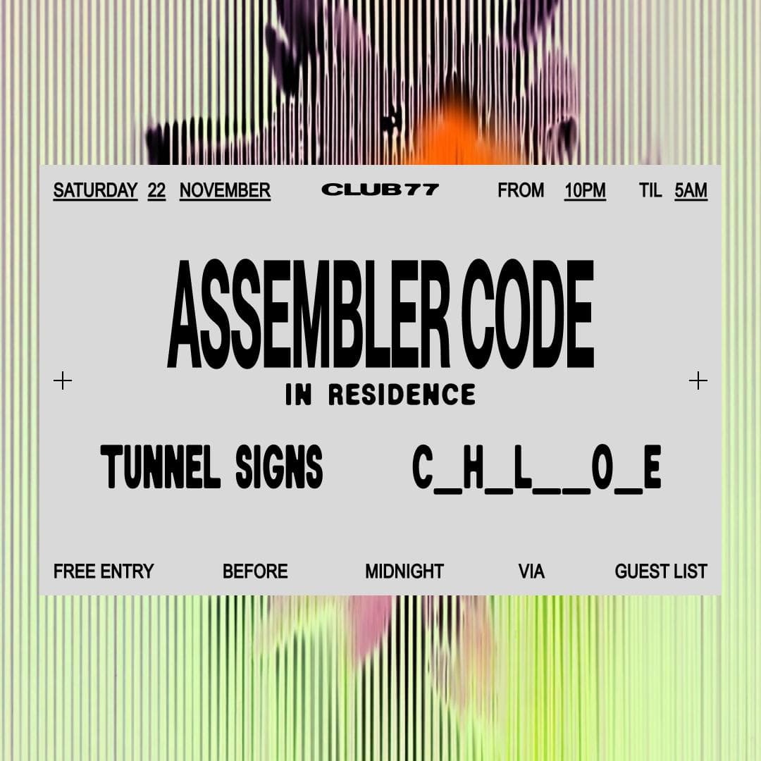 Club 77 In Residence: Assembler Code, Tunnel Signs, c_h_l__o_e