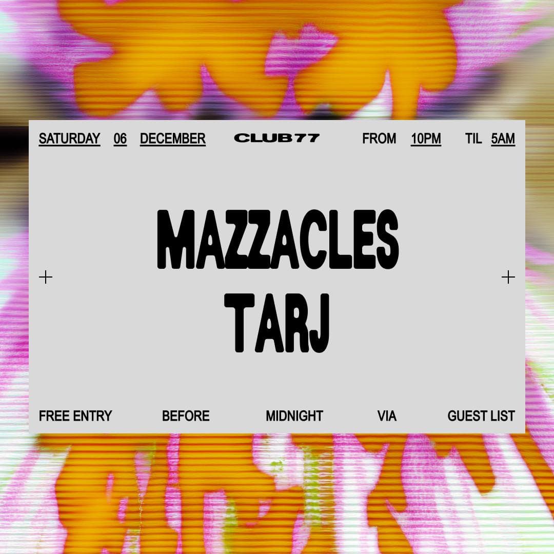 Event Info & Guest List: https://www.club77.com.au/events/club-77-mazzacles-tarj