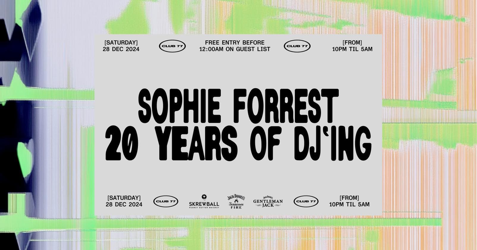 Event info & guest list here: https://www.club77.com.au/.../club-77-sophie-forrest-20...