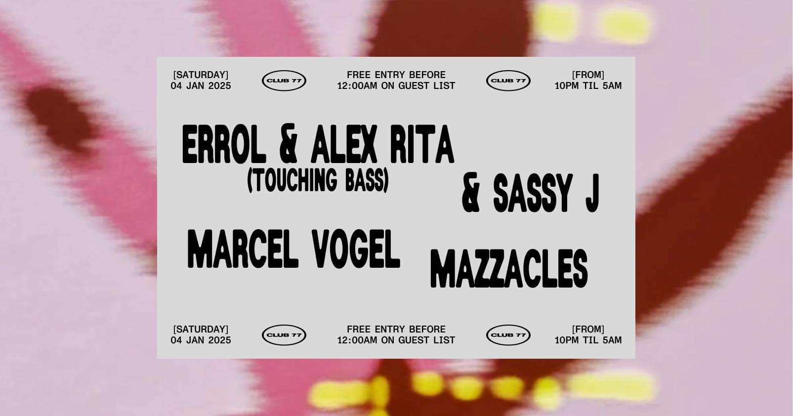 Club 77: Errol & Alex Rita (Touching Bass) & Sassy J, Marcel Vogel, Mazzacles