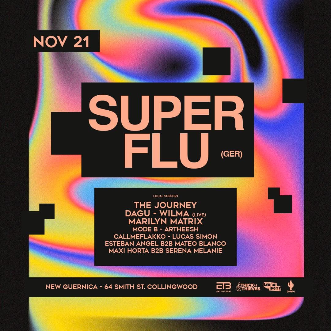 We’re thrilled to announce the return of a special collaboration between Eat The Beat and Thick As Thieves, bringing SUPER FLU to New Guernica on Friday, 21st November!