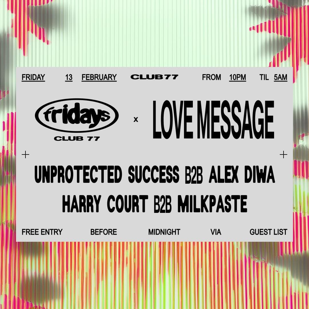 Firdays at 77 x Love Message: Unprotected Success b2b Alex Diwa, Harry Court b2b Milkpaste