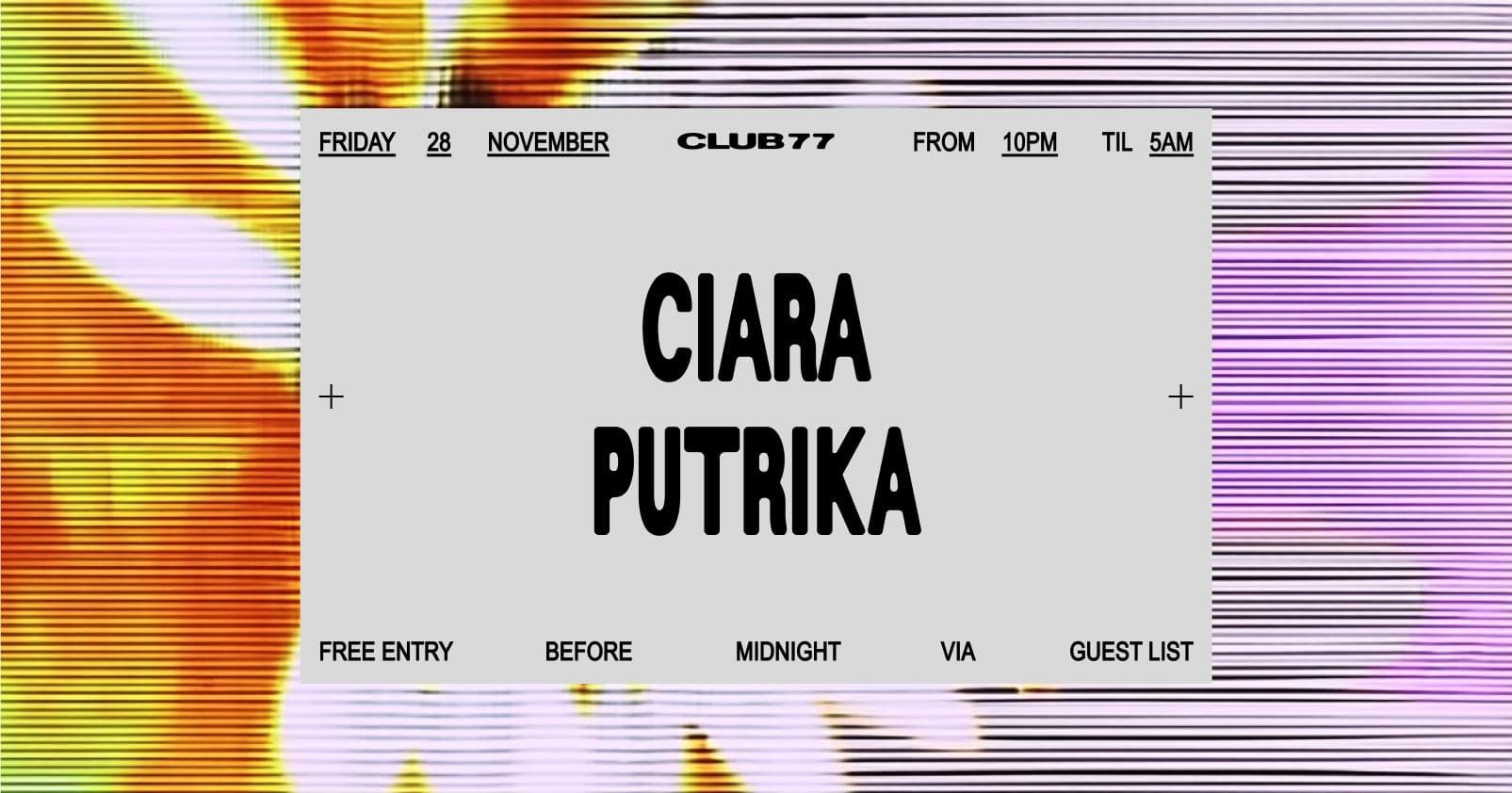 Event Info & Guest List: https://www.club77.com.au/events/fridays-at-77-ciara-putrika