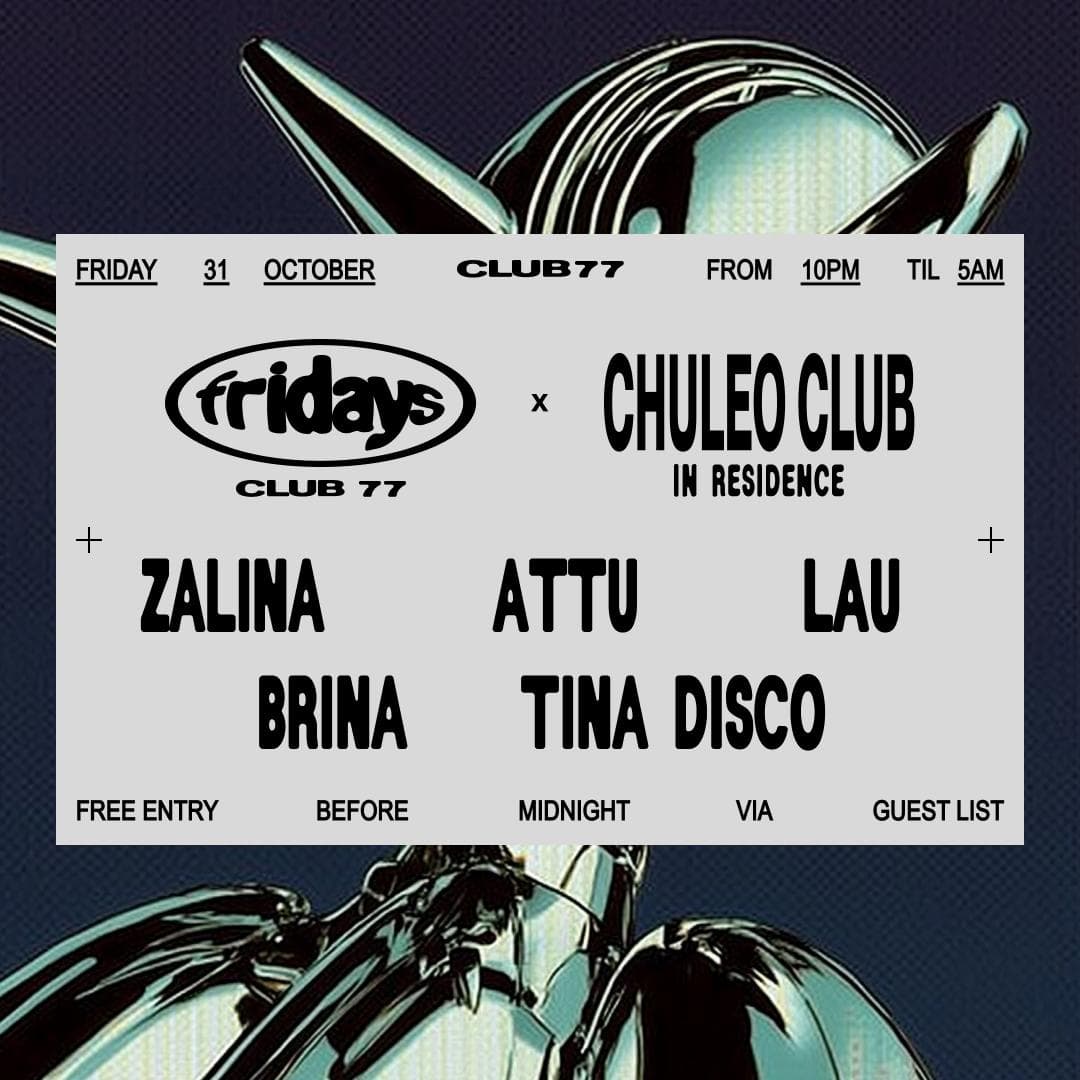 Fridays at 77 x Chuleo Club: Zalina, Tina Disco, Attu, Lau, Brina