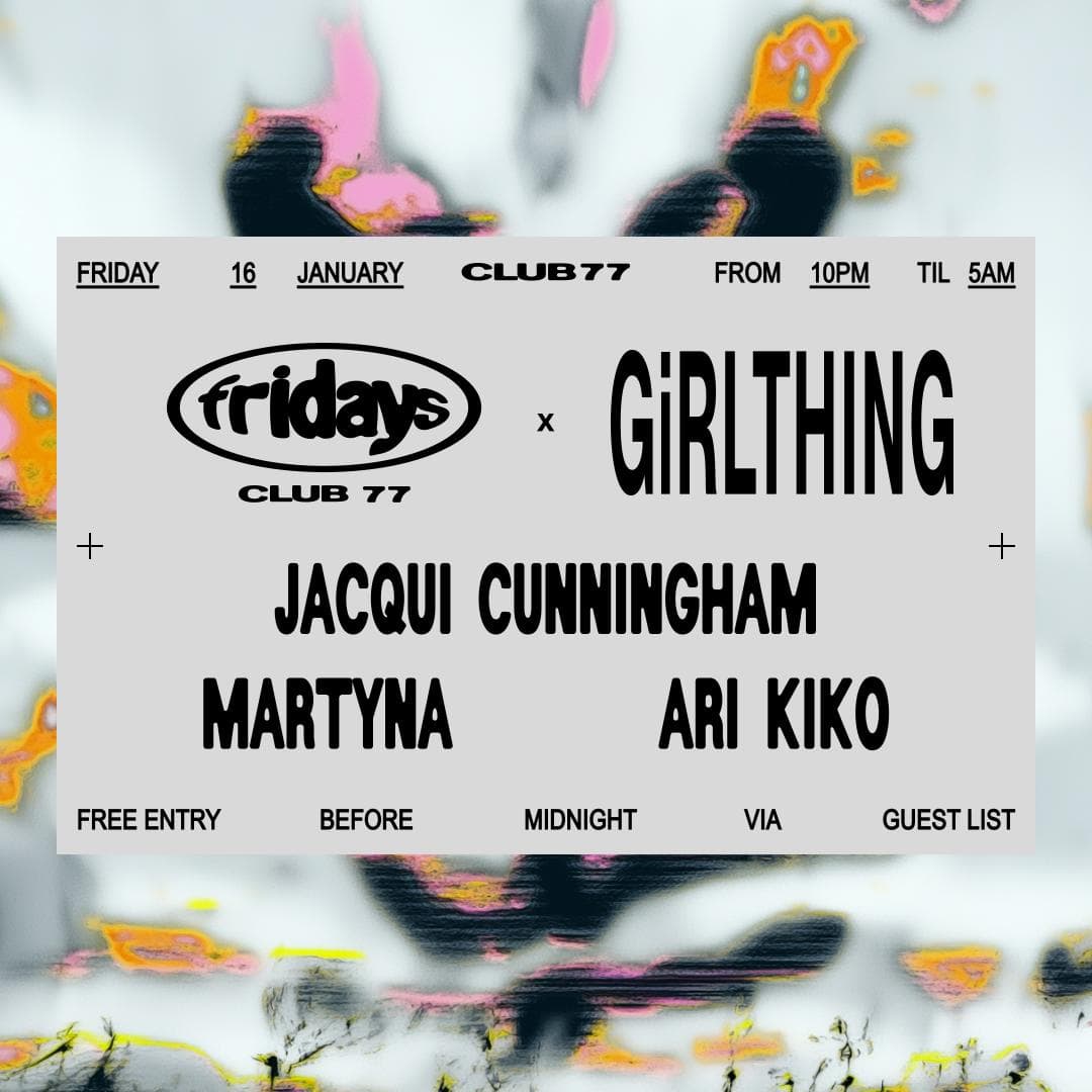 Fridays at 77 x GiRLTHING: Jacqui Cunningham, Ari Kiko, MARTYNA