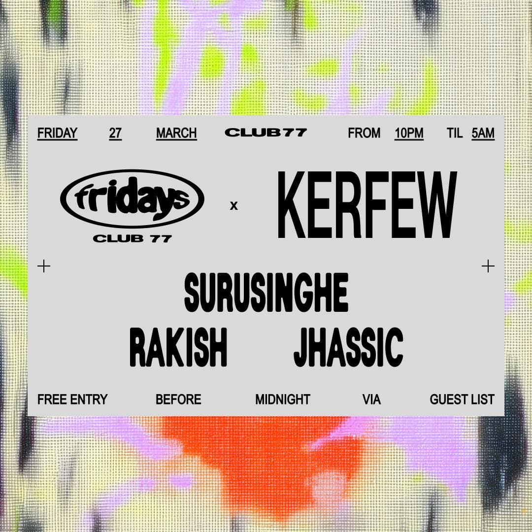 Fridays at 77 x Kerfew: Surusinghe, Rakish, Jhassic