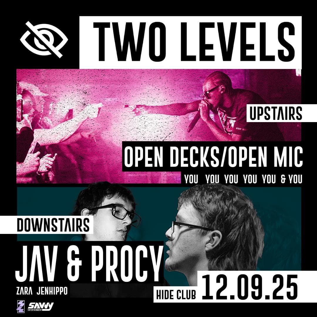 HIDE & SAVVY ENT PRESENT: 2 LEVELS FT JAV & PROCY + OPEN DECKS/MIC