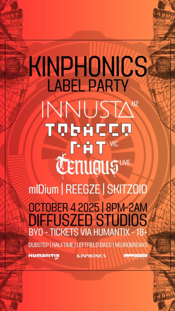 It's been a hot minute Brisbane, and we have a Kinvitation for you! This October, we are returning to our favourite venue for our inaugural label party. Join us at Diffuszed Studios in Wooloongabba on Saturday, October 4th from 8PM as we come together to showcase, celebrate, dance and resonate with our shared passion and our love for underground bass music, particularly within the dubstep, halftime & neurobreaks soundscapes. Our roster features some of the finest talent in the southern hemisphere when it comes to heavyweight bass, and we are very grateful to be hosting them all in one sitting as we check off our first year of label operations!