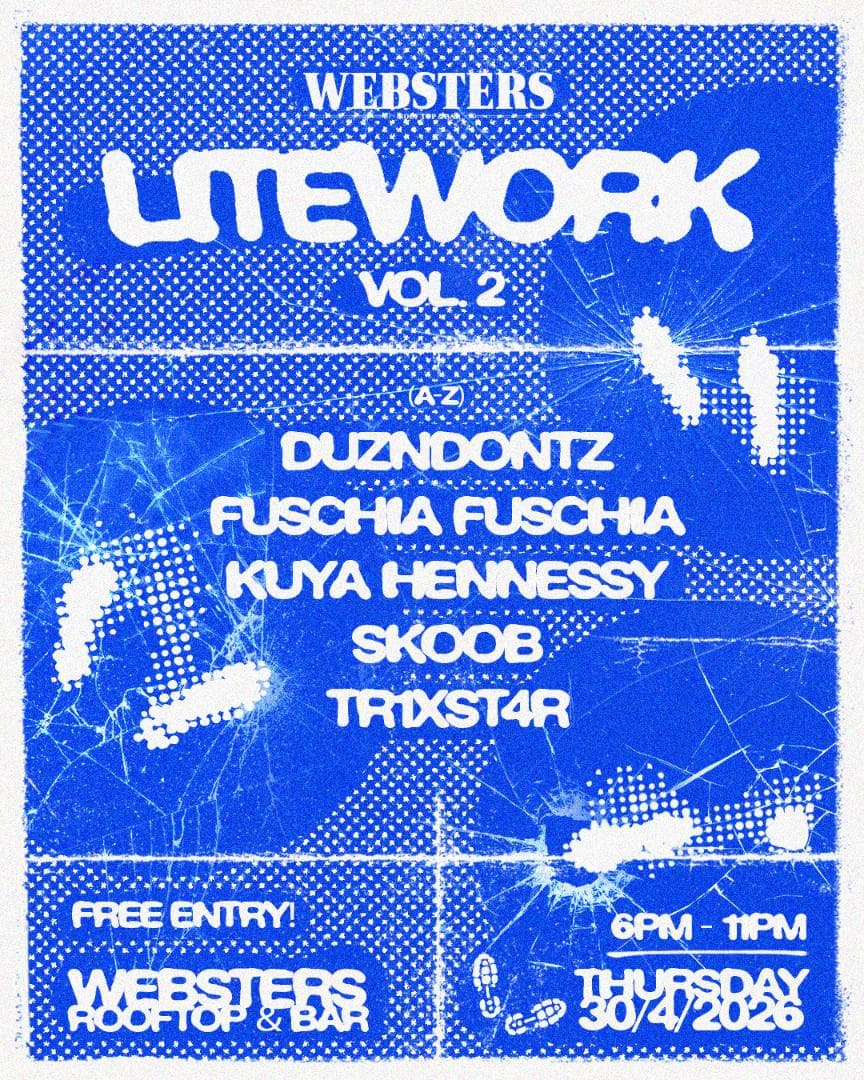 We are back for Vol.2 of LITEWORK on Thursday April 30th at Websters Rooftop! FREE ENTRY!