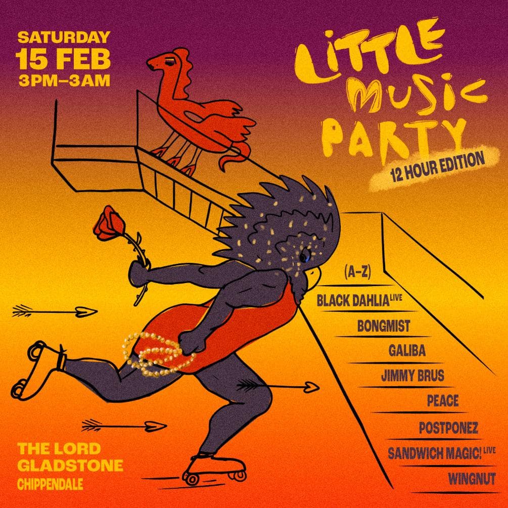 After hitting capacity for our debut 12 hour edition of little music party in winter, we are happy to be returning to The Lord Gladstone on Saturday 15th February for another silly little summer event!