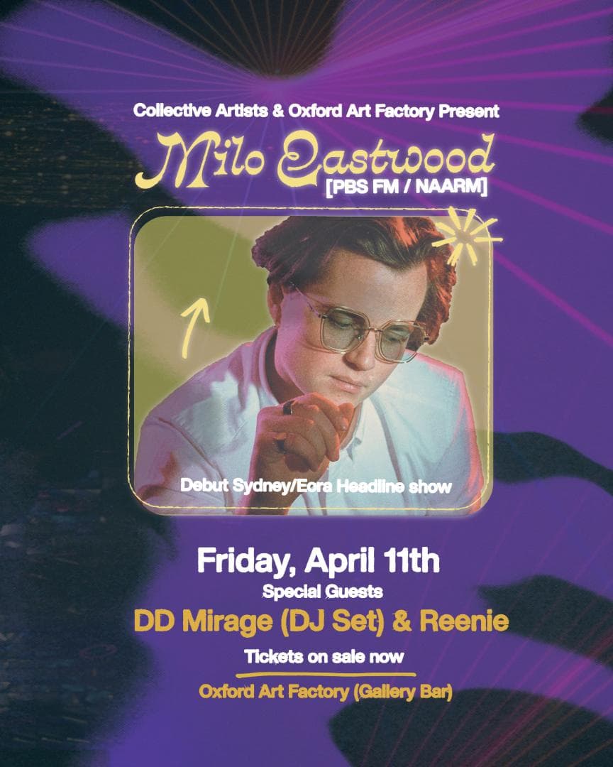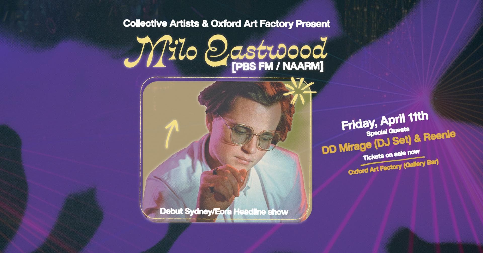 After years of passionately sharing music on the airwaves and dance floors across his home base of Melbourne, Milo Eastwood is finally heading north for his first-ever Sydney headline show at Oxford Art Factory.