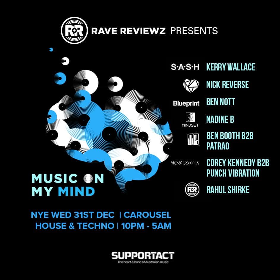 MUSIC ON MY MIND - the rave for mental health is BACK. Rave Reviewz is once again teaming up with some of Sydney's biggest brands to rave for mental health... this time on NEW YEAR'S EVE!