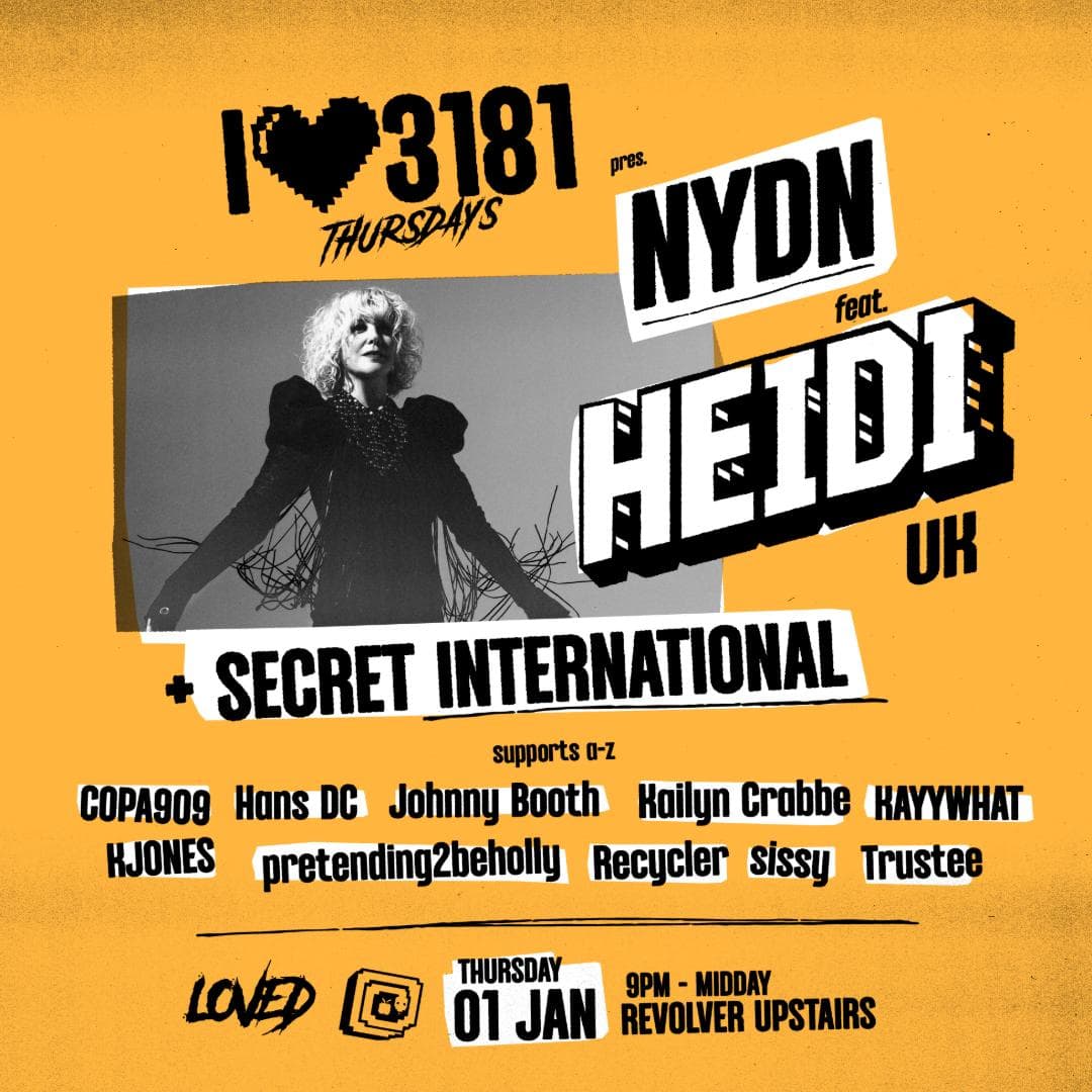 NYDN ft. HEIDI (UK) + Secret International — LOVED & 3181 Thursdays