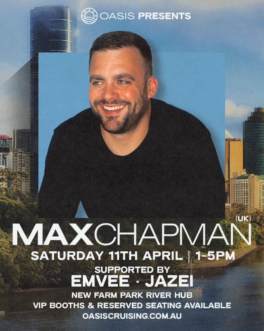 Max Chapman (UK), is taking over OASIS Cruising for one epic day boat party, bringing his signature high-energy, groove-driven sound that sits somewhere between rolling tech house and punchy, dancefloor-focused house for QLD's only show on his Australian tour.