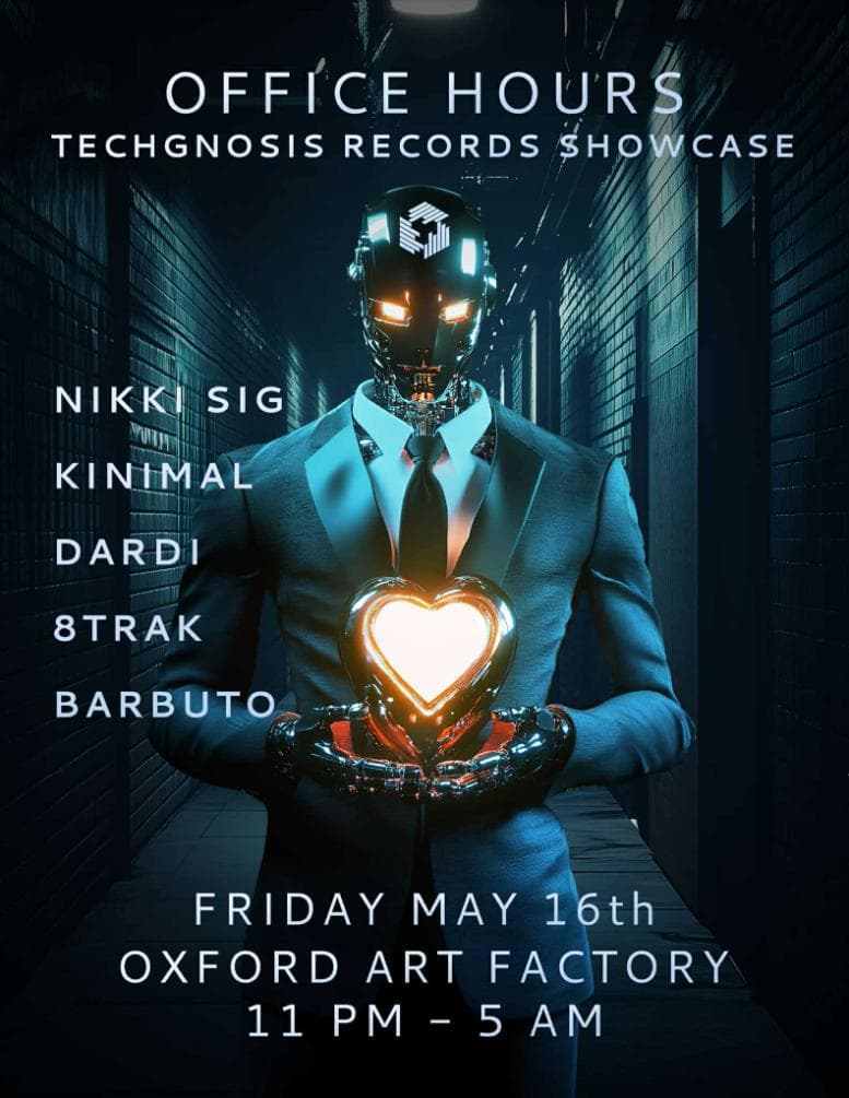 Office Hours returns to hack the system with its fifth underground techno infiltration, featuring a full Techgnosis Records takeover at Oxford Art Factory.