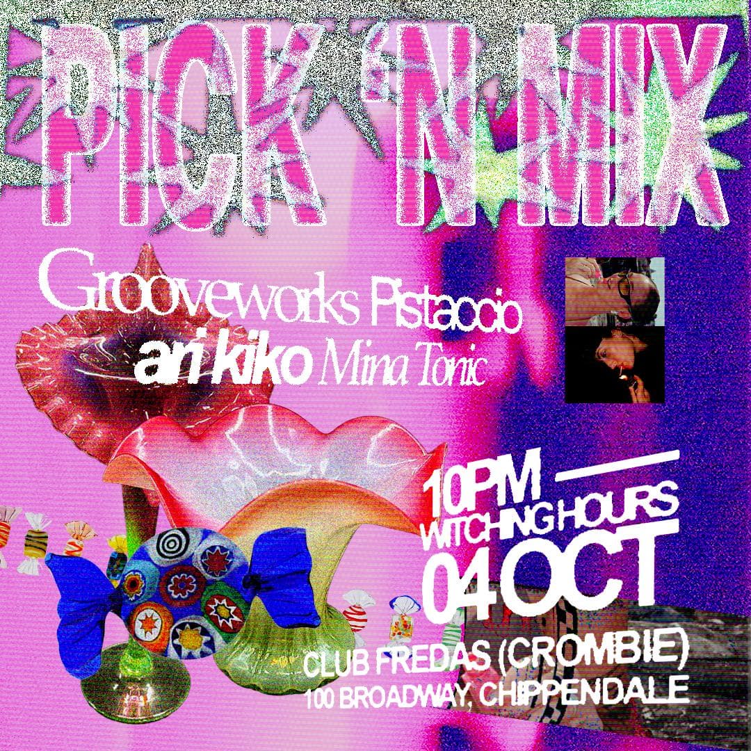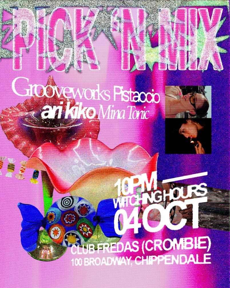 Pick and mix is a showcase of emerging local talent and tried and tested deckside heroes curated by Sydney party girl Ari Kiko. For our second instalment we are very excited to invite heavy weights Grooveworks + Pistaccio into the mix. Abercrombie strongholds Ari Kiko and Mina Tonic (Danza) will also go head to head in an inaugural b2b that will take you to the moon and back.