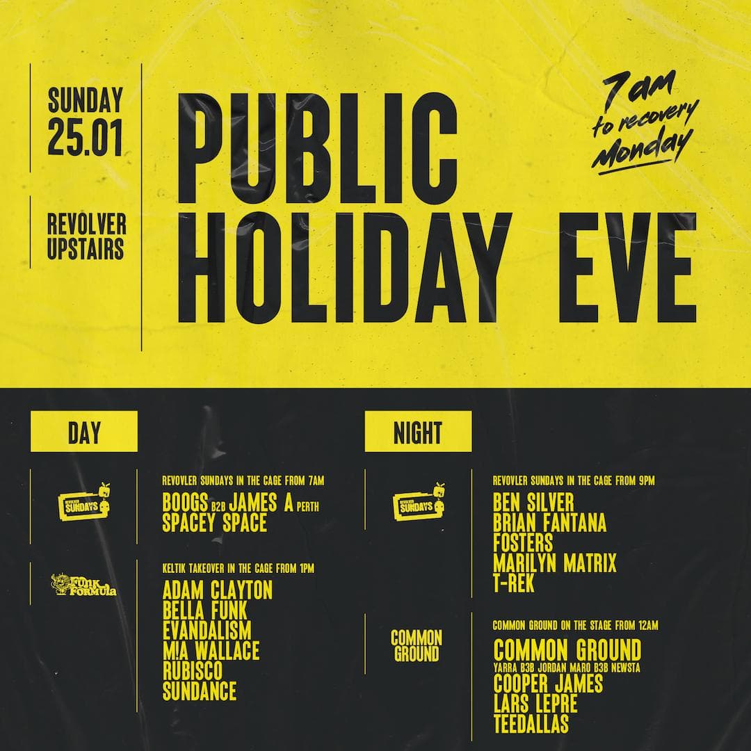 Public Holiday Eve — Funk Formula, Common Ground & Revolver Sundays