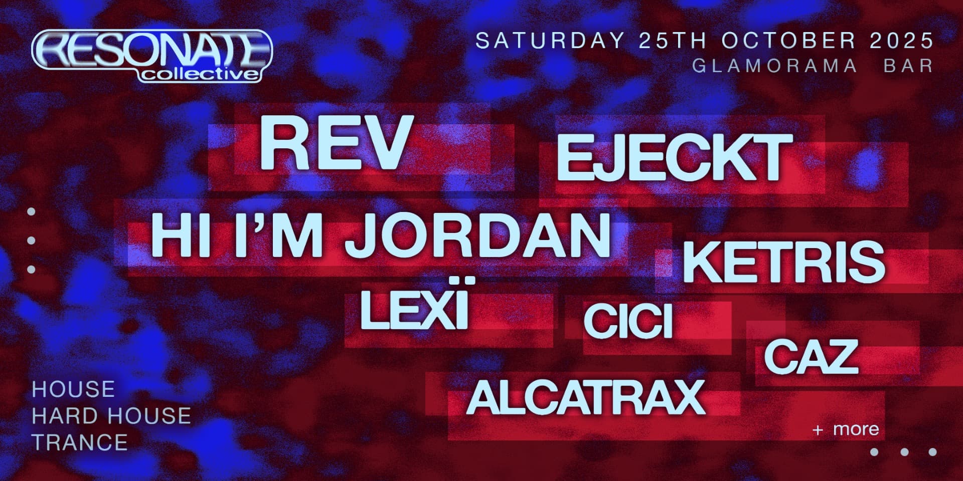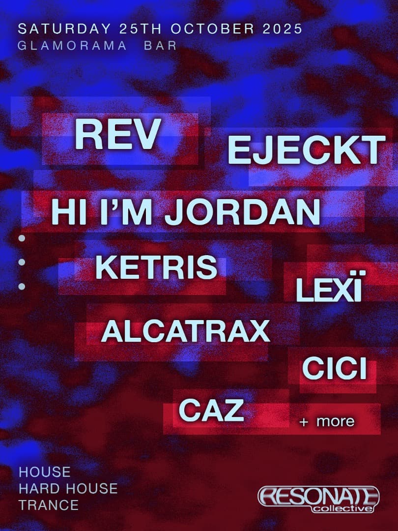 We're welcoming Rev, Hi I'm Jordan, Lexi, Alcatrax, and CAZ, alongside Resonate staples Ejeckt, Ketris, and CICl - all set to light up the Glamorama courtyard.