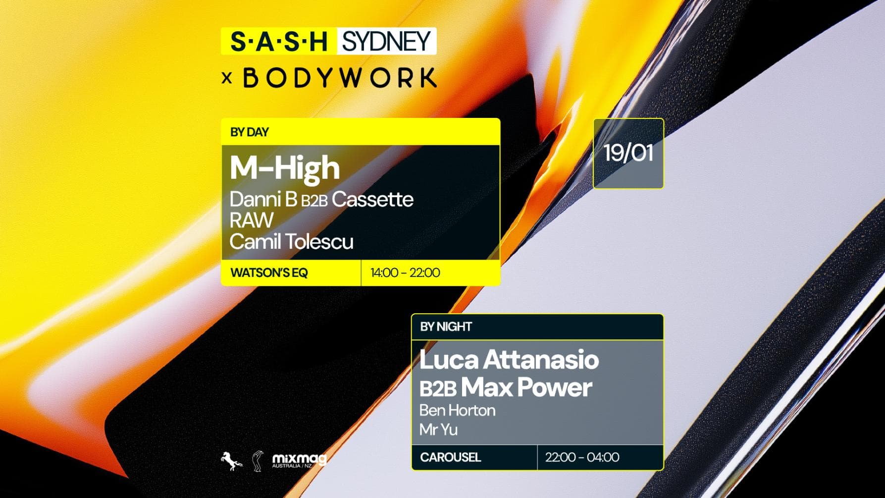 ★ S.A.S.H By Day & Night ★ Bodywork ft. M-High ★ Luca Attanasio x Max Power ★ Sunday January 19th ★