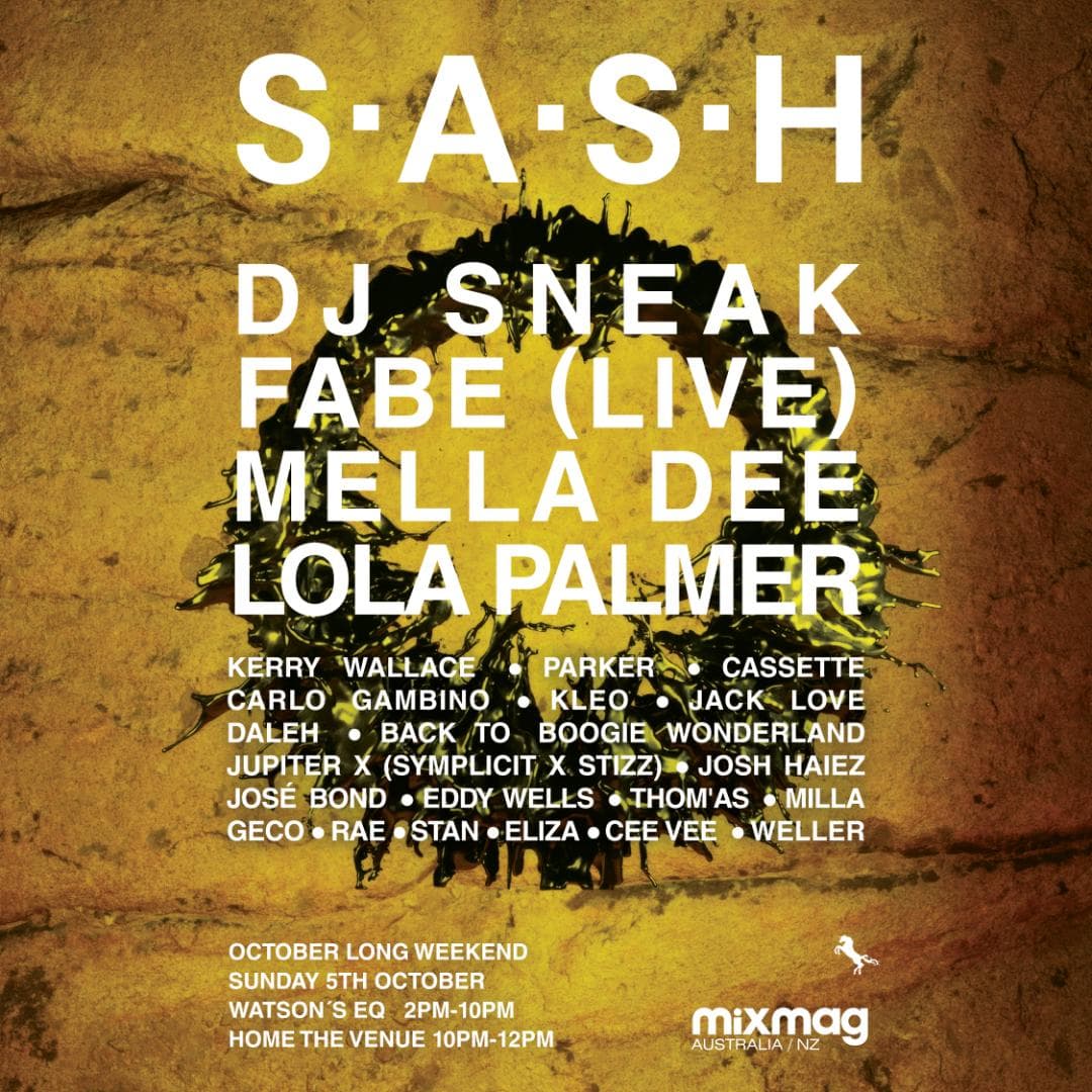 ★ S.A.S.H October Long Weekend ★ DJ Sneak ★ Fabe (Live) ★ Mella Dee ★ Lola Palmer ★ Sun Oct 5th ★