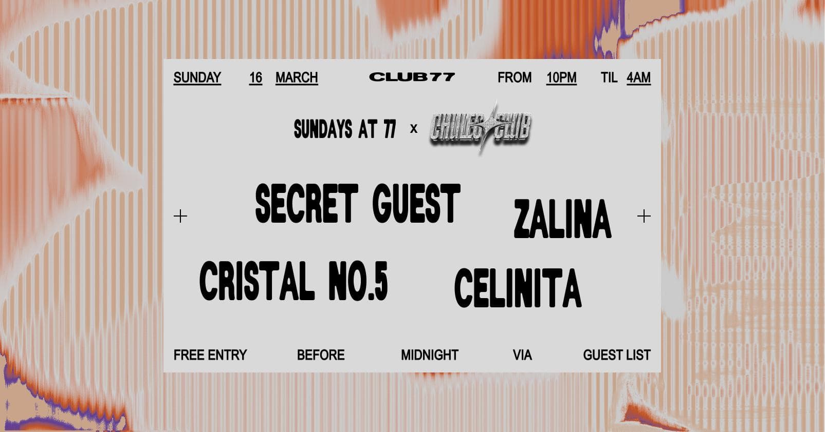 Sundays at 77 x Chuleo Club: Secret Guest, Zalina, Cristal No.5, Celinita