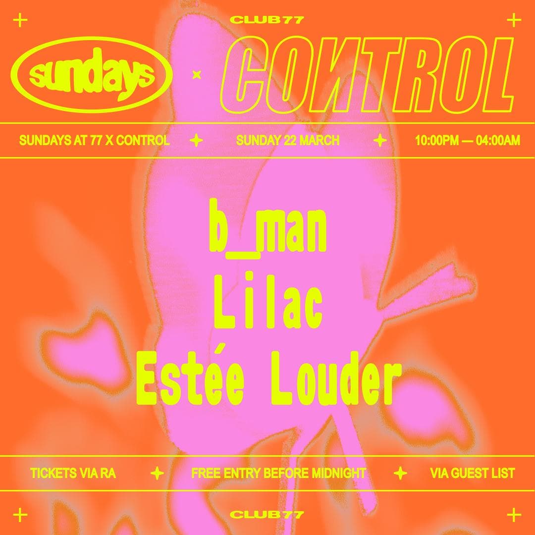 Sundays at 77 x Control: b_man, Lilac, Estée Louder