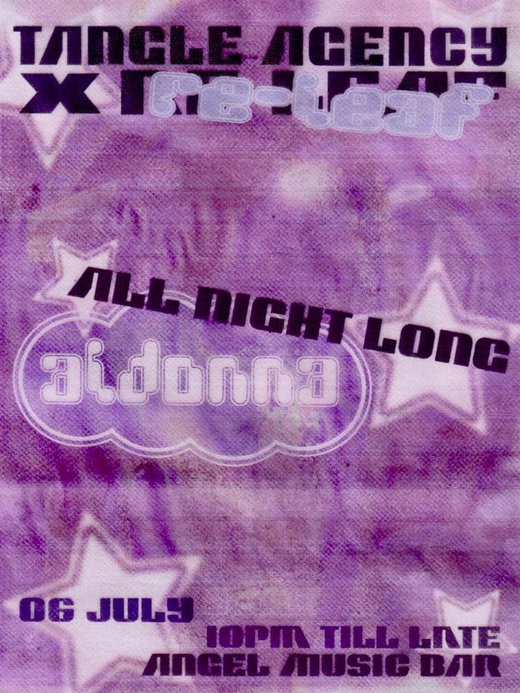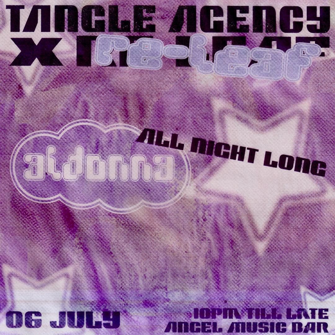 Tangle Agency & Re-Leaf present Aldonna all night long, a late night club show held at Angel Music Bar on Saturday the 6th of July.
