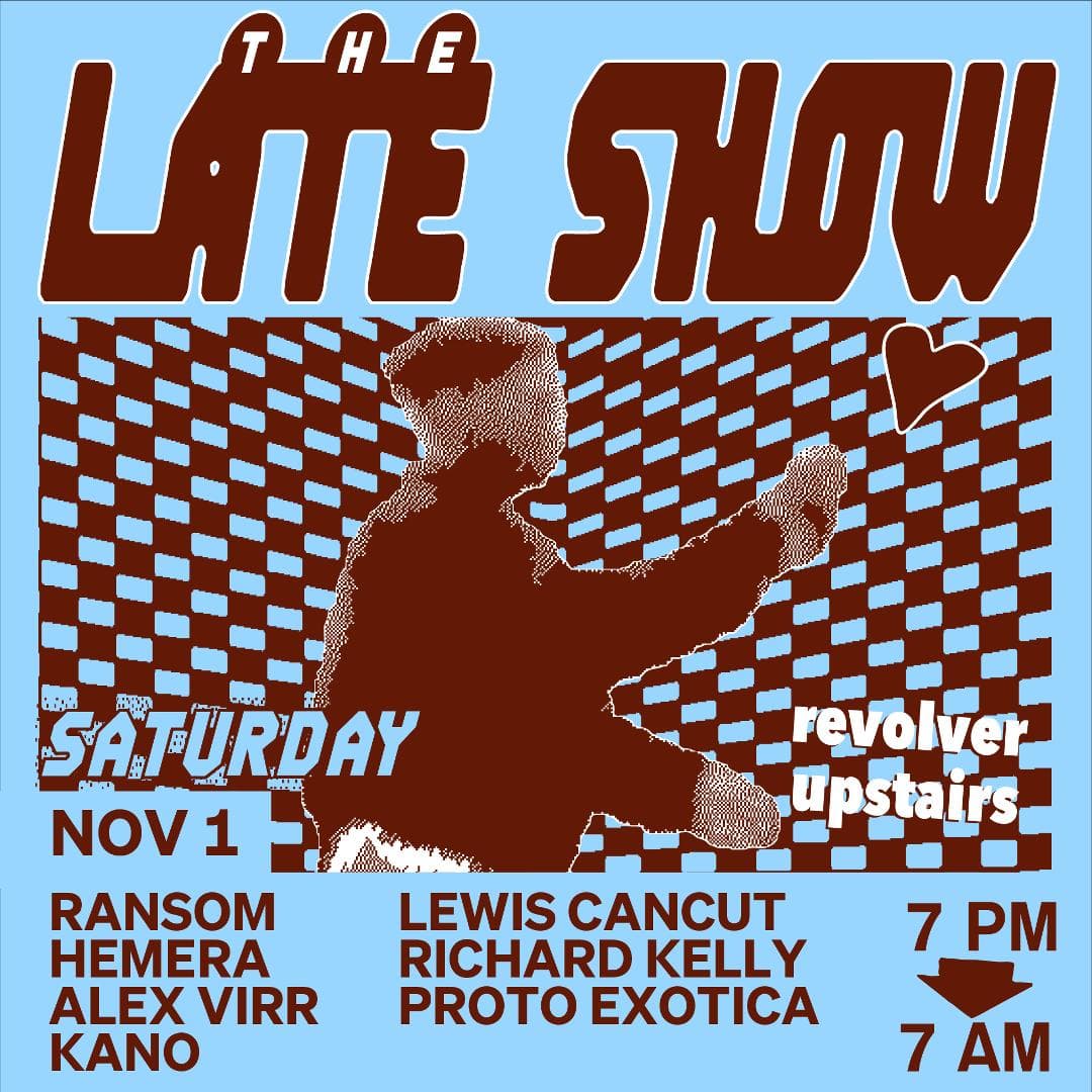 The Late Show is Revolver’s weekly Saturday night. Spread over two rooms, the night begins with Colonel Tan’s restaurant, then gathers pace around 10pm. In the front room, a barrage of Garage, Bassline, Techno and Qgom is shelled down; while in the back-bar, DJ’s splice together House with layers of Italo, Soca and Afro. Residents Ransom, Lewis CanCut and guests plus Boogs from 7am Sunday.