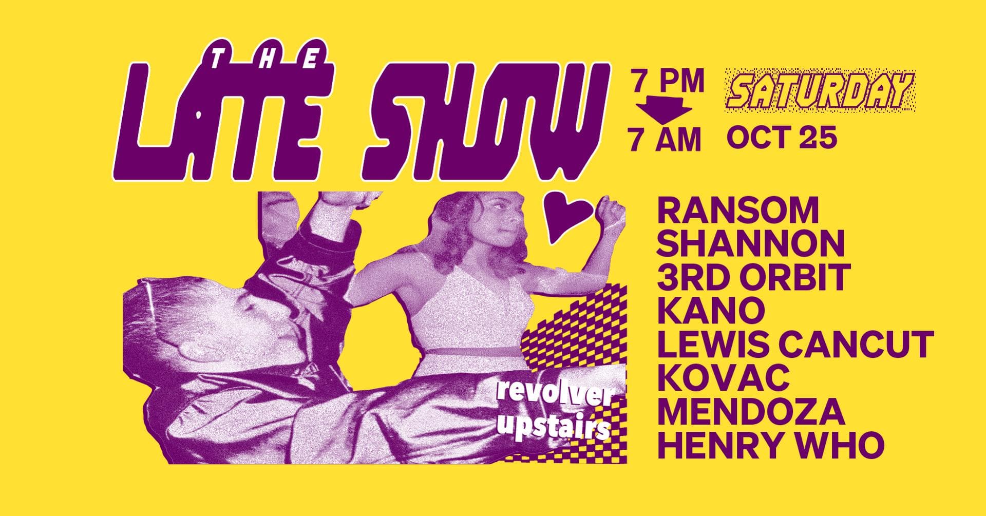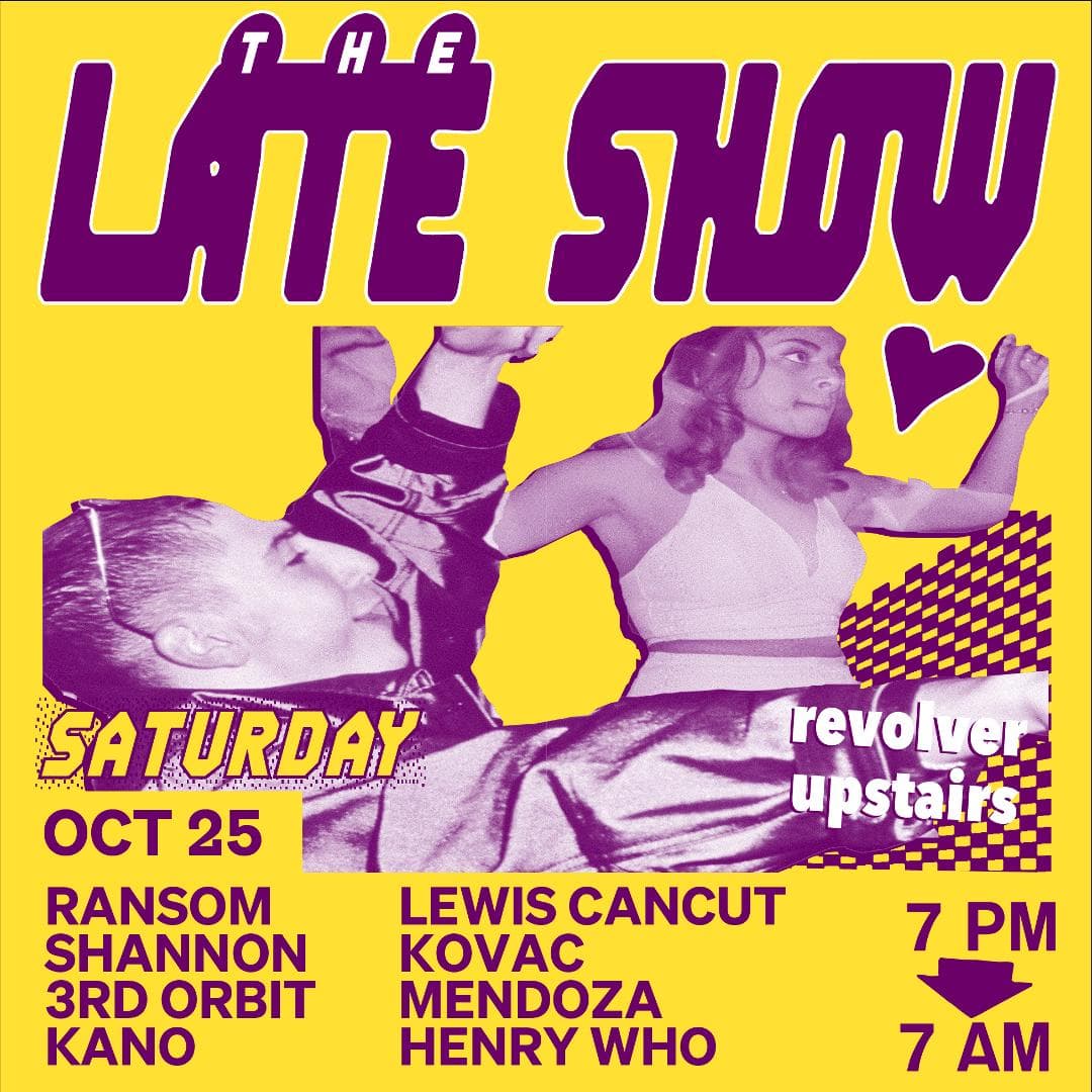 The Late Show is Revolver’s weekly Saturday night. Spread over two rooms, the night begins with Colonel Tan’s restaurant, then gathers pace around 10pm. In the front room, a barrage of Garage, Bassline, Techno and Qgom is shelled down; while in the back-bar, DJ’s splice together House with layers of Italo, Soca and Afro. Residents Ransom, Lewis CanCut and guests plus Boogs from 7am Sunday.