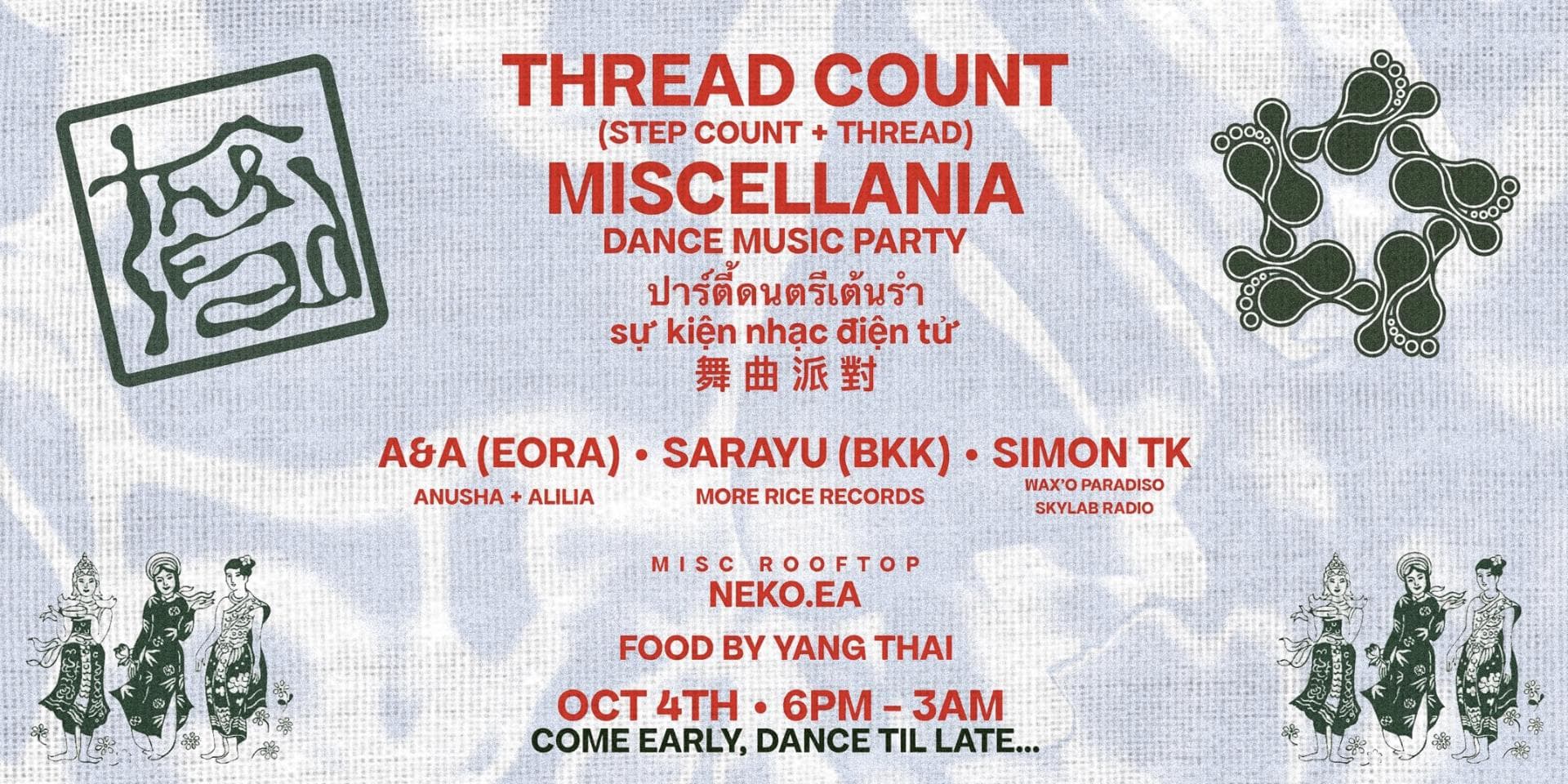 Thread x Step Count Presents: Sarayu [BKK], A&A [Eora], Simon TK and Neko.ea on October 4th 6PM - 3AM.